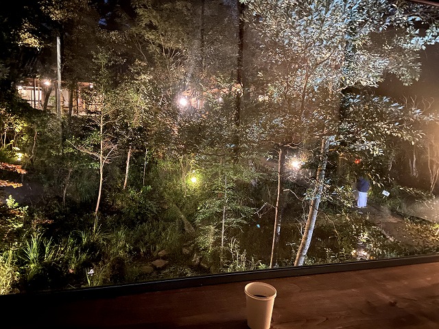 貸切風呂は内風呂で、外は自然の景色ですが日が暮れていると全然見えず残念でした。翌朝檜風呂に入ったときは景色も楽しむことができました。